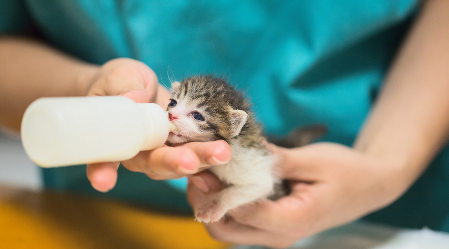 - 離乳期は子猫用ミルクや離乳食を与える